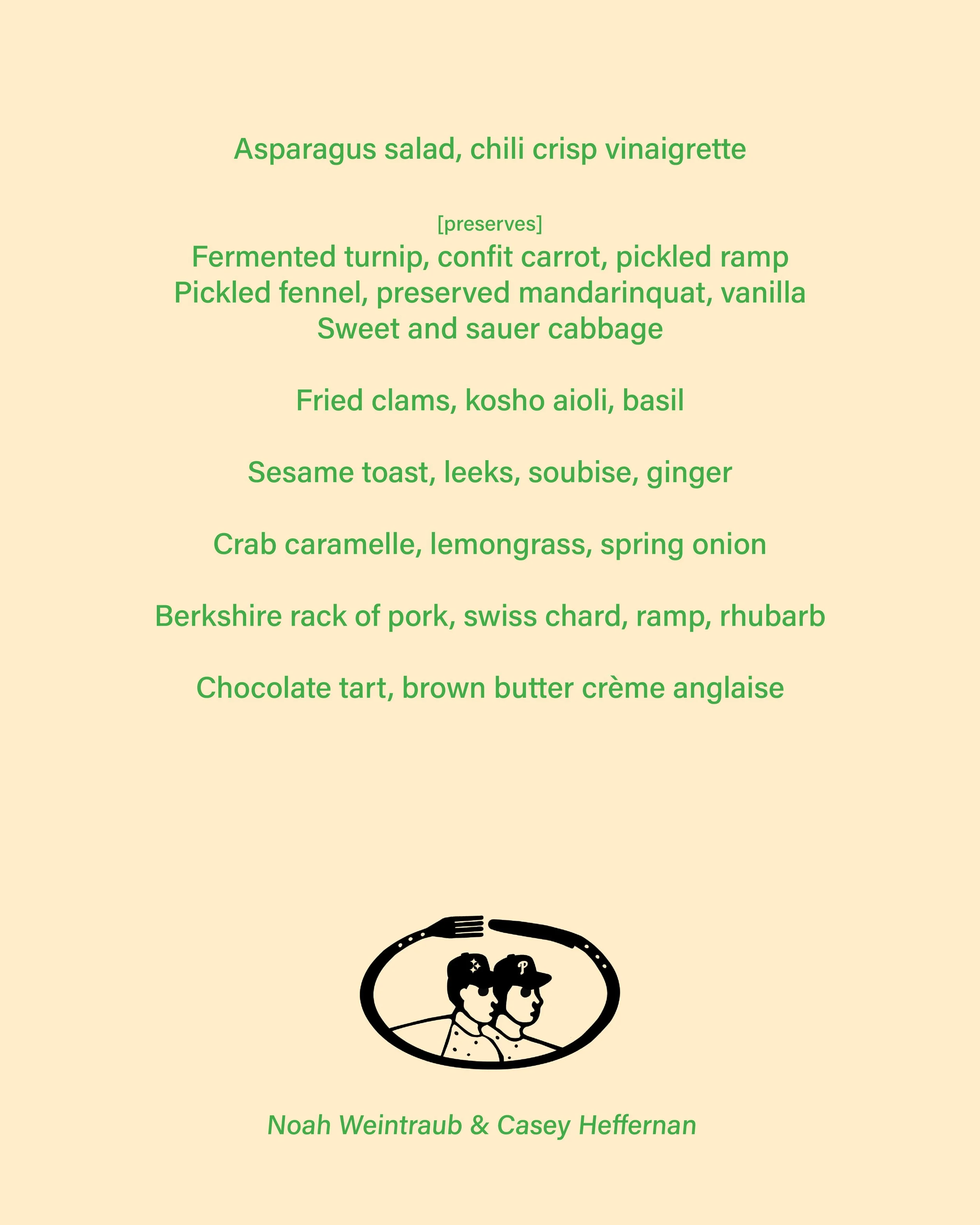 -the menu listed above is prefixed; there will be no modifications or substitutions offered-